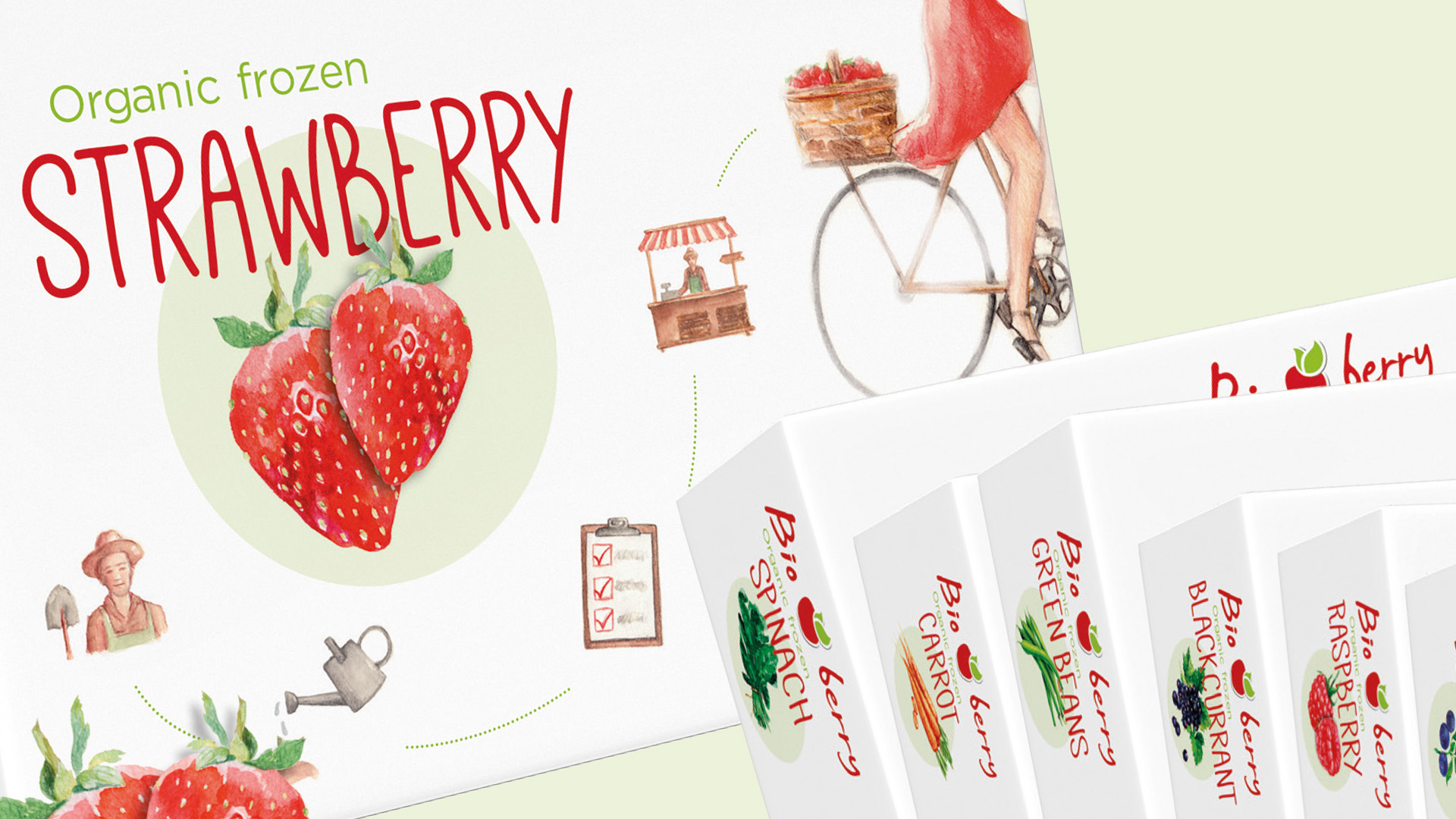 Angefangen hat unsere Zusammenarbeit mit einer Einladung zum Pitch und der Ideenentwicklung für das Packaging Design zur Einführung der „Frozen Strawberry“. Wir haben uns der Aufgabe der Markteinführung angenommen und eine auffällige und hochwertige Verpackung im trendigen Aquarelle Style gestaltet – und alle Elemente auf der Verpackung von Hand gezeichnet! Mit dieser Idee haben wir nicht nur den Pitch gewonnen, sondern auch gleich die gesamte Produktrange mit sieben weiteren Frozen-Produkten sowie der Smoothie-Range und der Babynahrung-Range.